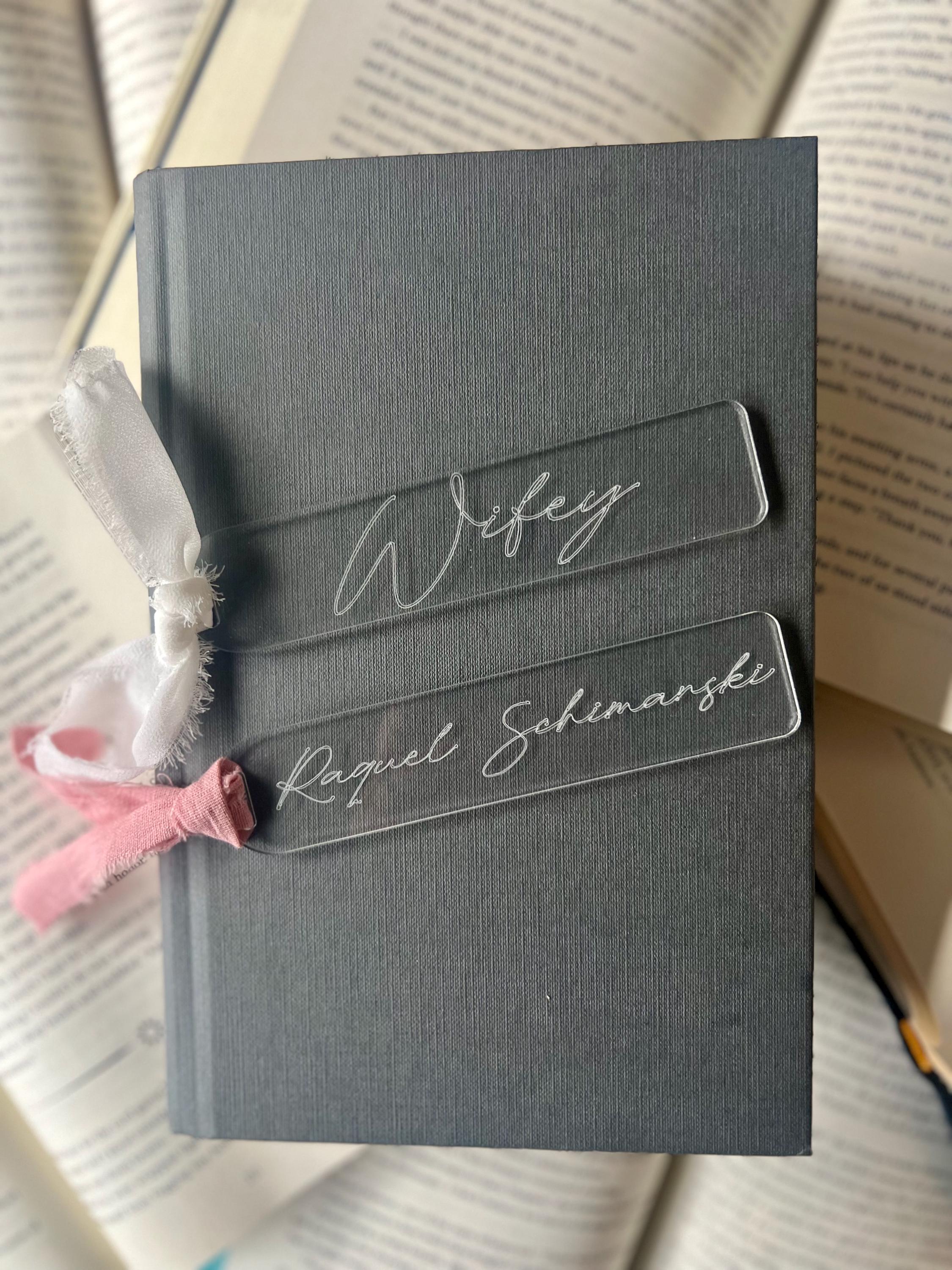 Celebrate your love of reading with this beautifully crafted Custom Engraved Acrylic Bookmark with Ribbon — a perfect book lover gift, personalized wedding favor, or keepsake for any literary enthusiast. Made from clear, high-quality acrylic, this lightweight yet durable bookmark can be customized with a name or special message, adding a personal touch to every page. Each bookmark features elegant engraved lettering that stands out beautifully against the transparent background, creating a sophisticated accessory that blends functionality with style.