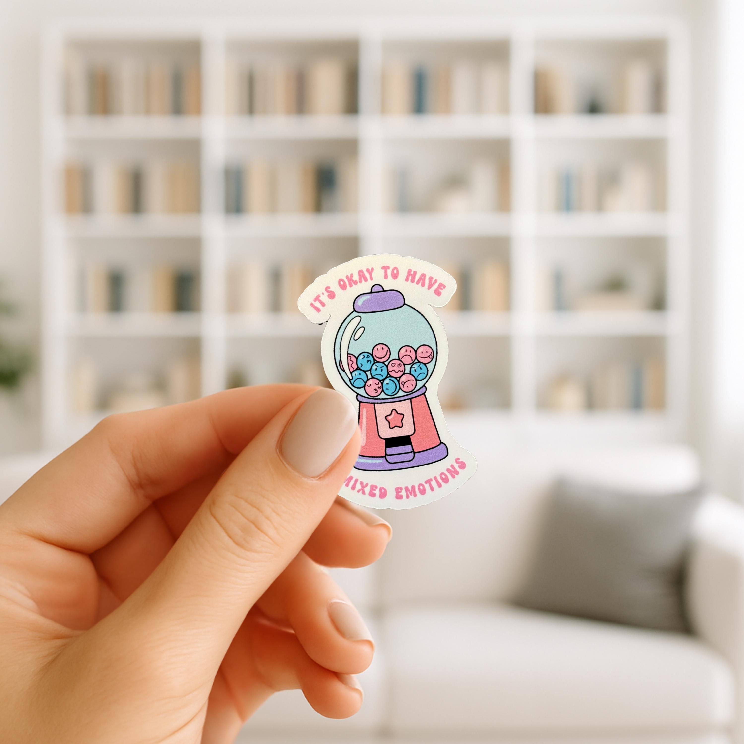 Express your emotions with this uplifting Mental Health Sticker featuring the empowering message "It's Okay to Have Mixed Emotions." Perfect for reminding yourself or loved ones that feeling a range of emotions is completely normal and okay. Crafted with glossy vinyl, this decal is ideal for personalizing your water bottle, laptop, Kindle, or any smooth, dry surface.