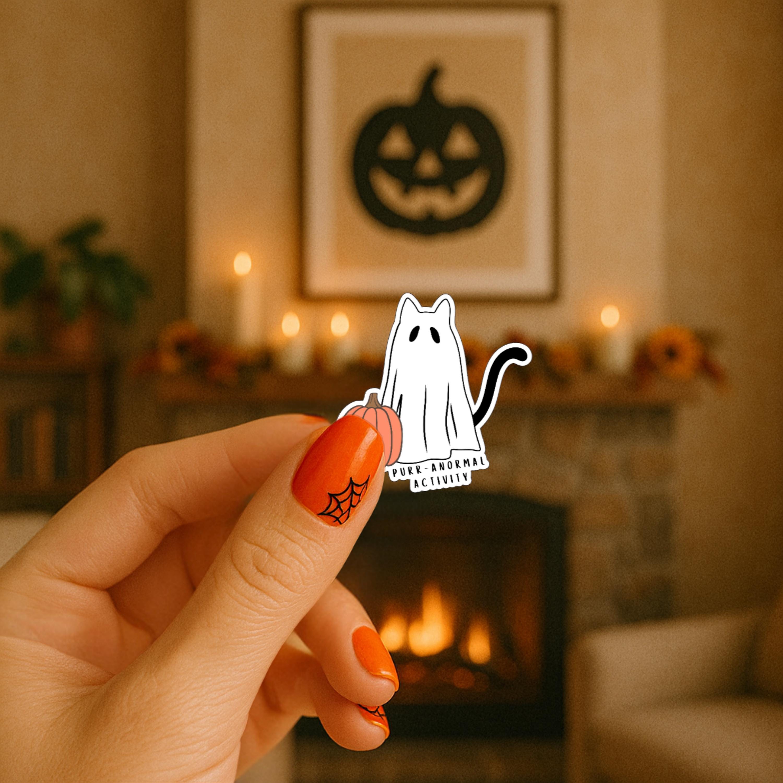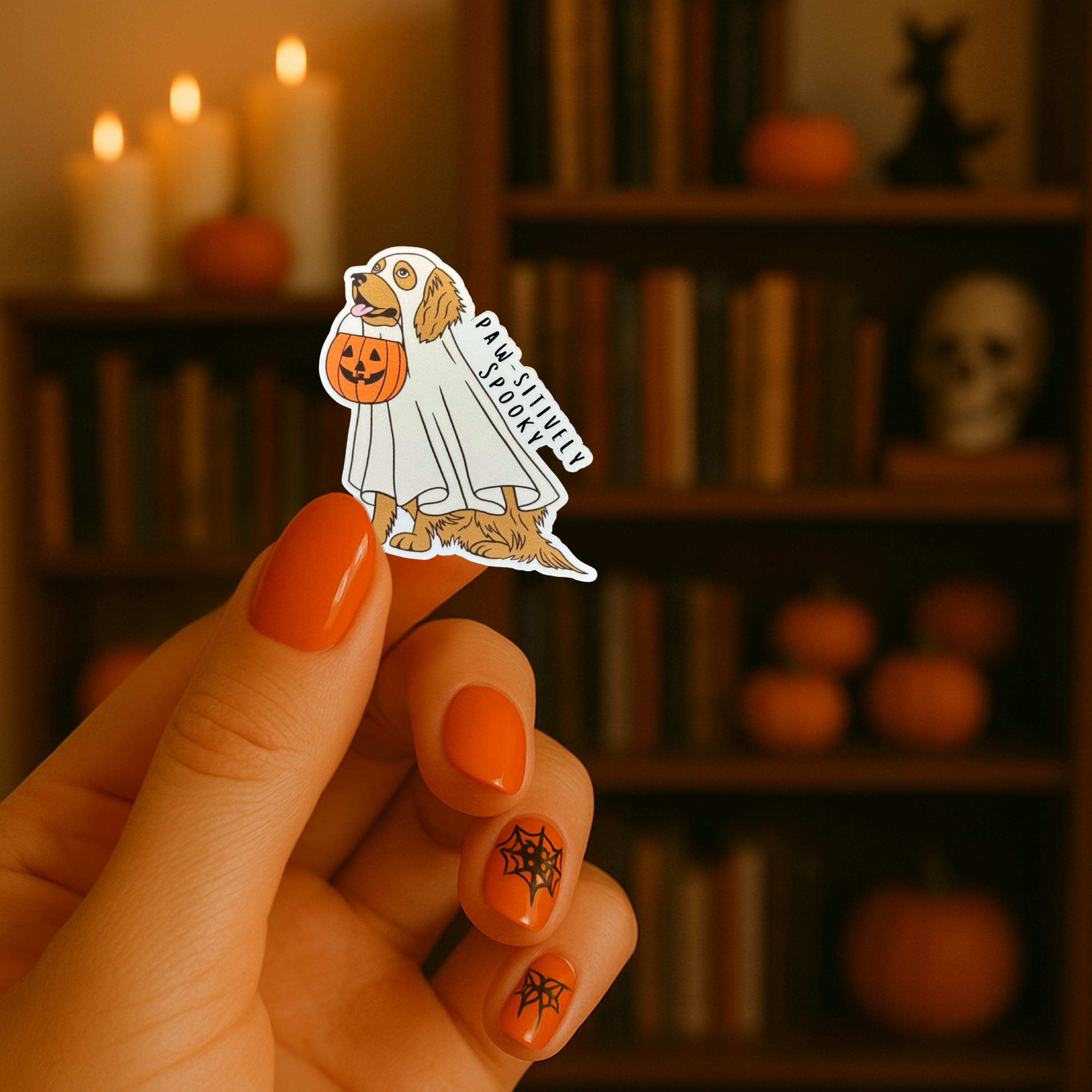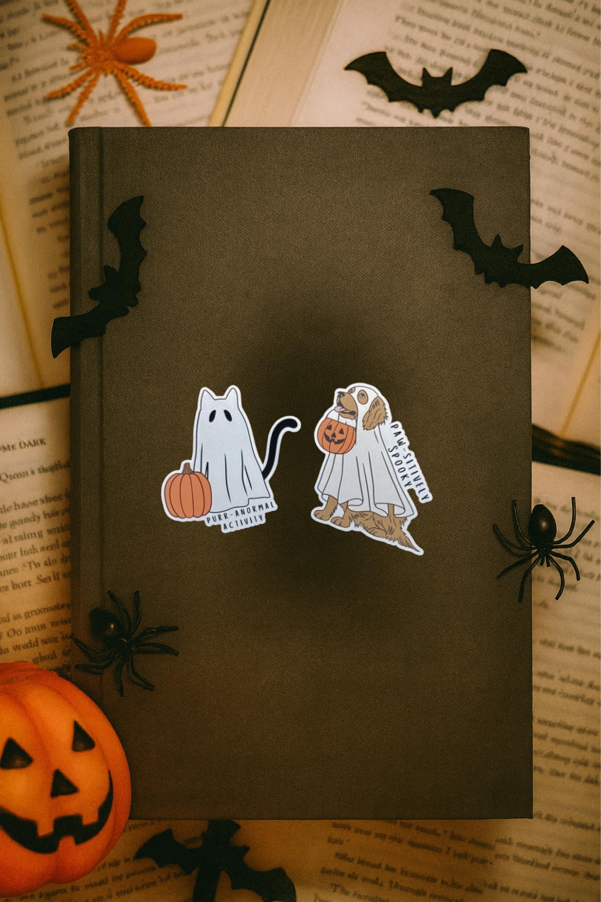 Celebrate the spooky season with these adorable Spooky Pet Ghost Stickers, perfect for Halloween! Designed for animal lovers, these glossy vinyl decals feature charming ghost-themed pets—choose between a paw-sitively spooky dog or a purr-anormal activity cat. These stickers are ideal for personalizing your water bottles, laptops, Kindle covers, or any smooth surface you want to add a touch of Halloween fun to.
