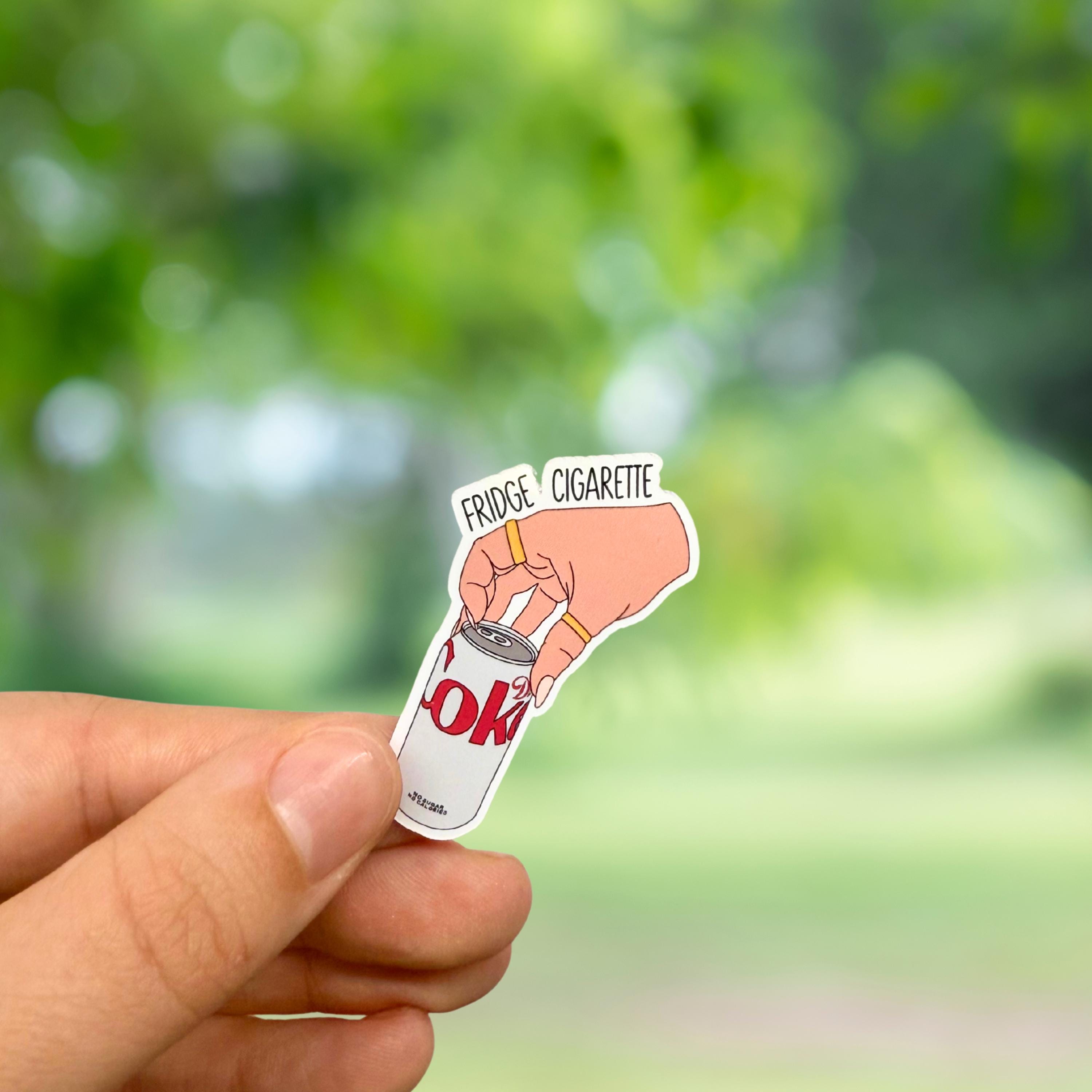 Add some humor and personality to your water bottle, Kindle or laptop with this fun Diet Coke Sticker! Perfect for soda lovers and those obsessed with their favorite beverage, this glossy vinyl decal features a cheeky "fridge cigarette" design that’s sure to make you smile. Whether you're a die-hard Diet Coke fan or just love funny soda-themed accessories, this sticker is a playful way to showcase your obsession.
