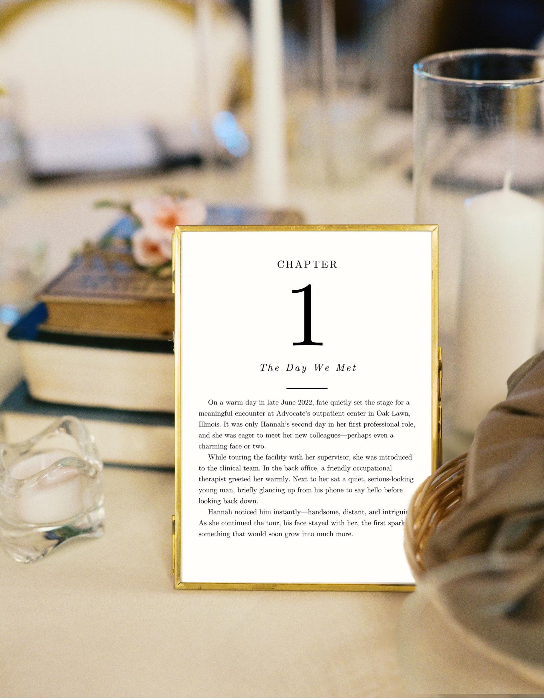 Add a touch of literary charm to your wedding or special event with our Bookish Chapter Table Number Sign, an editable digital file perfect for book-themed weddings, literary celebrations, bridal showers, and more. Designed with elegance and versatility in mind, this customizable printable template allows you to create beautiful, personalized table numbers that match your unique theme effortlessly.