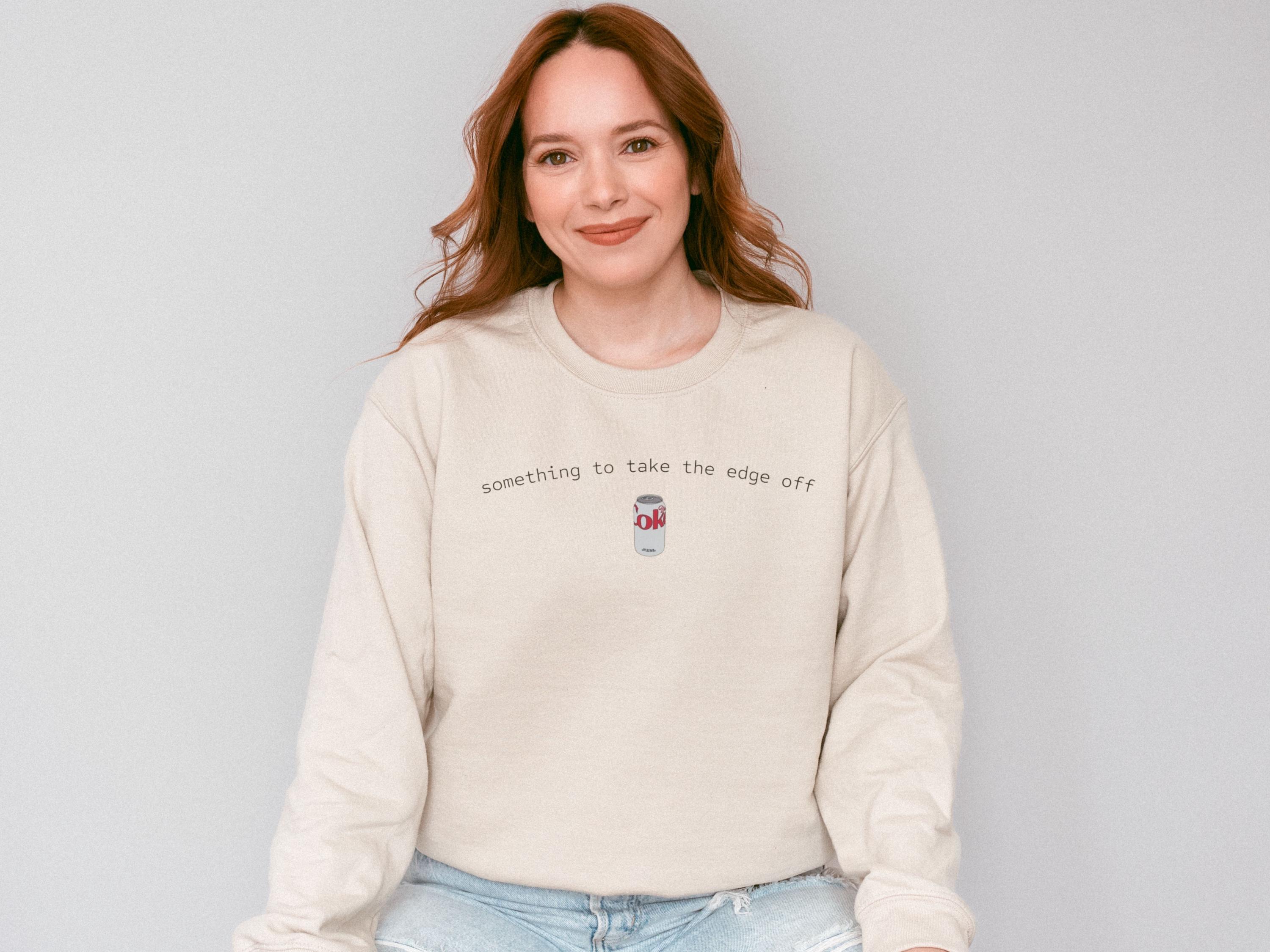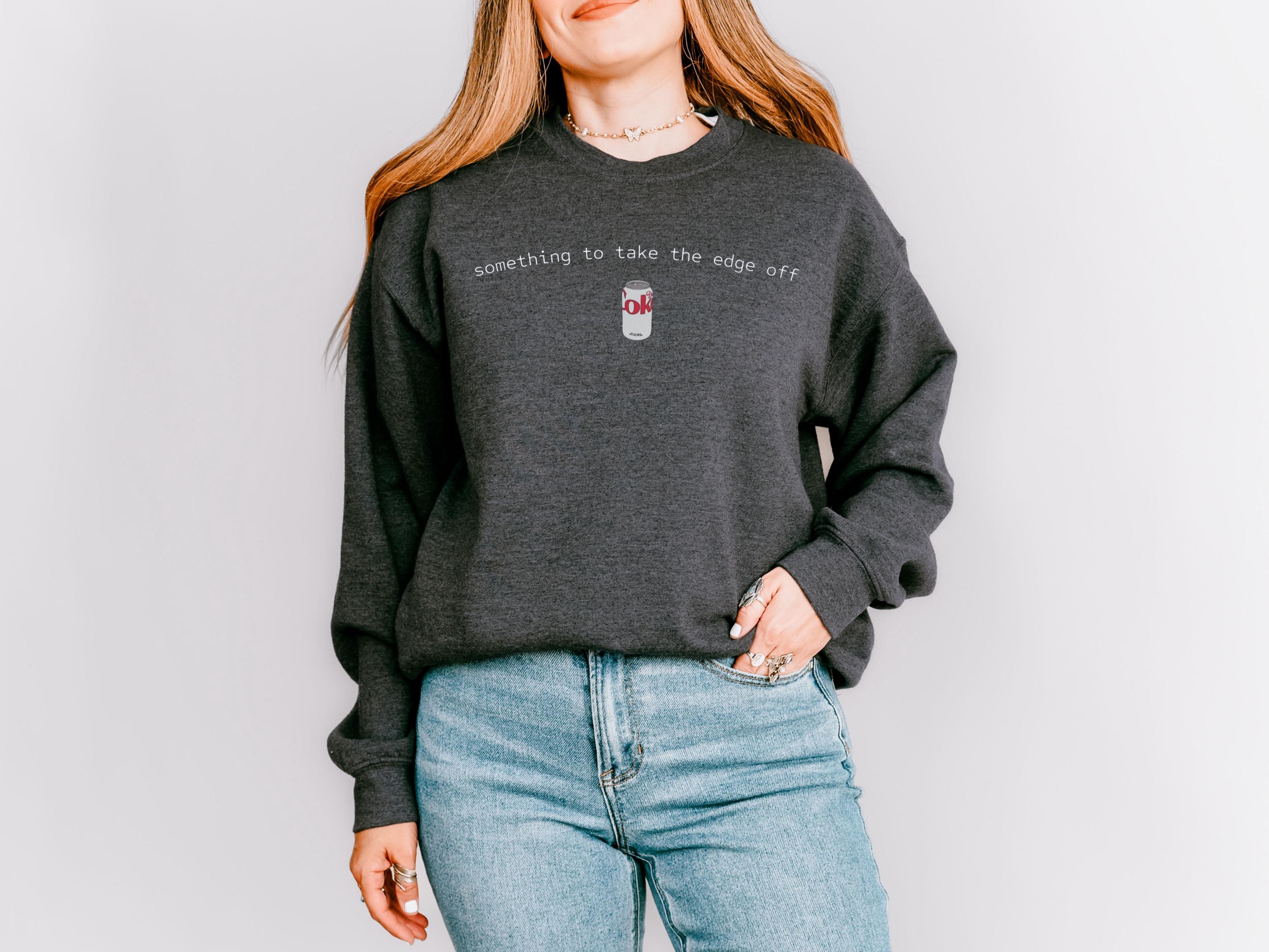 Stay cozy and showcase your playful side with this Funny Diet Coke Sweatshirt with the quote "something to take the edge off." Perfect for Diet Coke lovers and anyone who appreciates a good laugh, this unisex crewneck pullover combines humor with comfort. Whether you're lounging at home, running errands, or heading out casual style, this graphic crewneck is a versatile addition to your wardrobe.