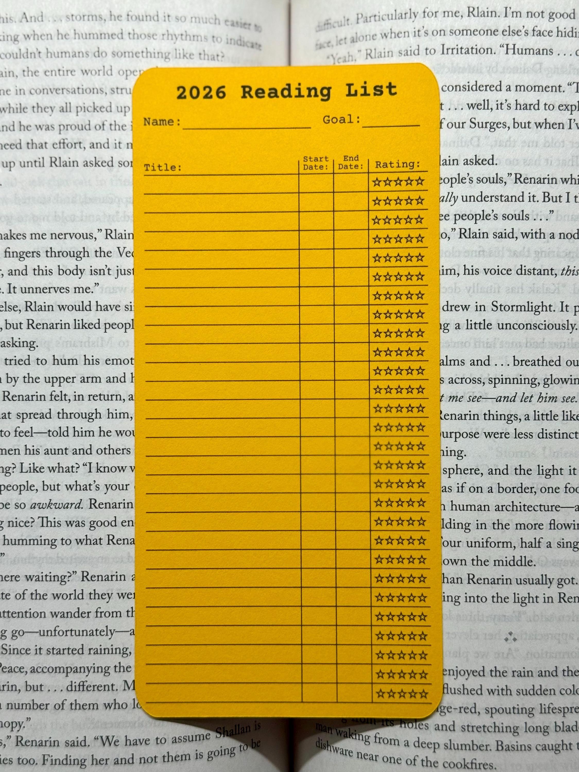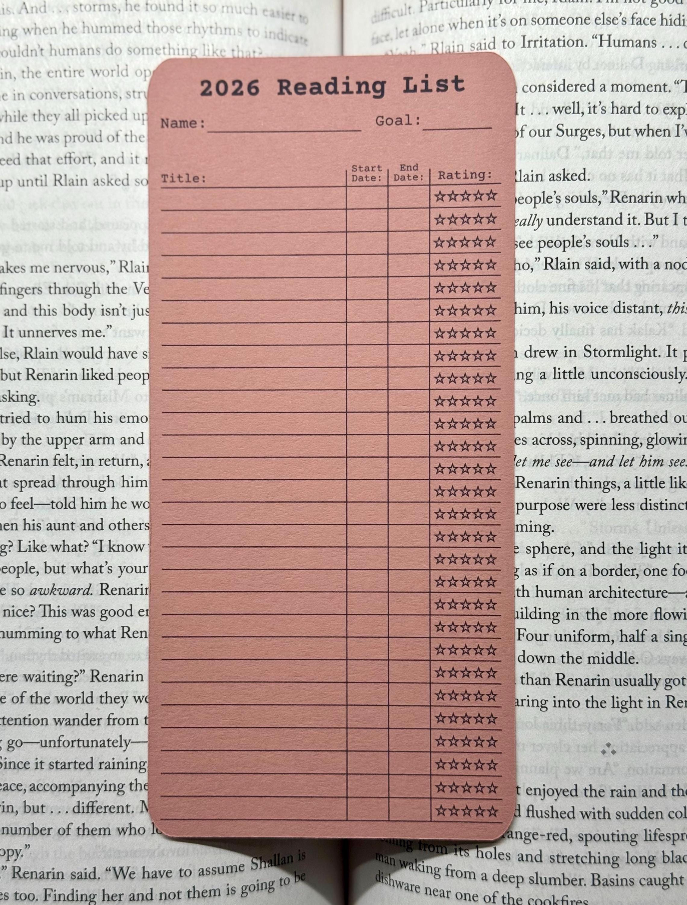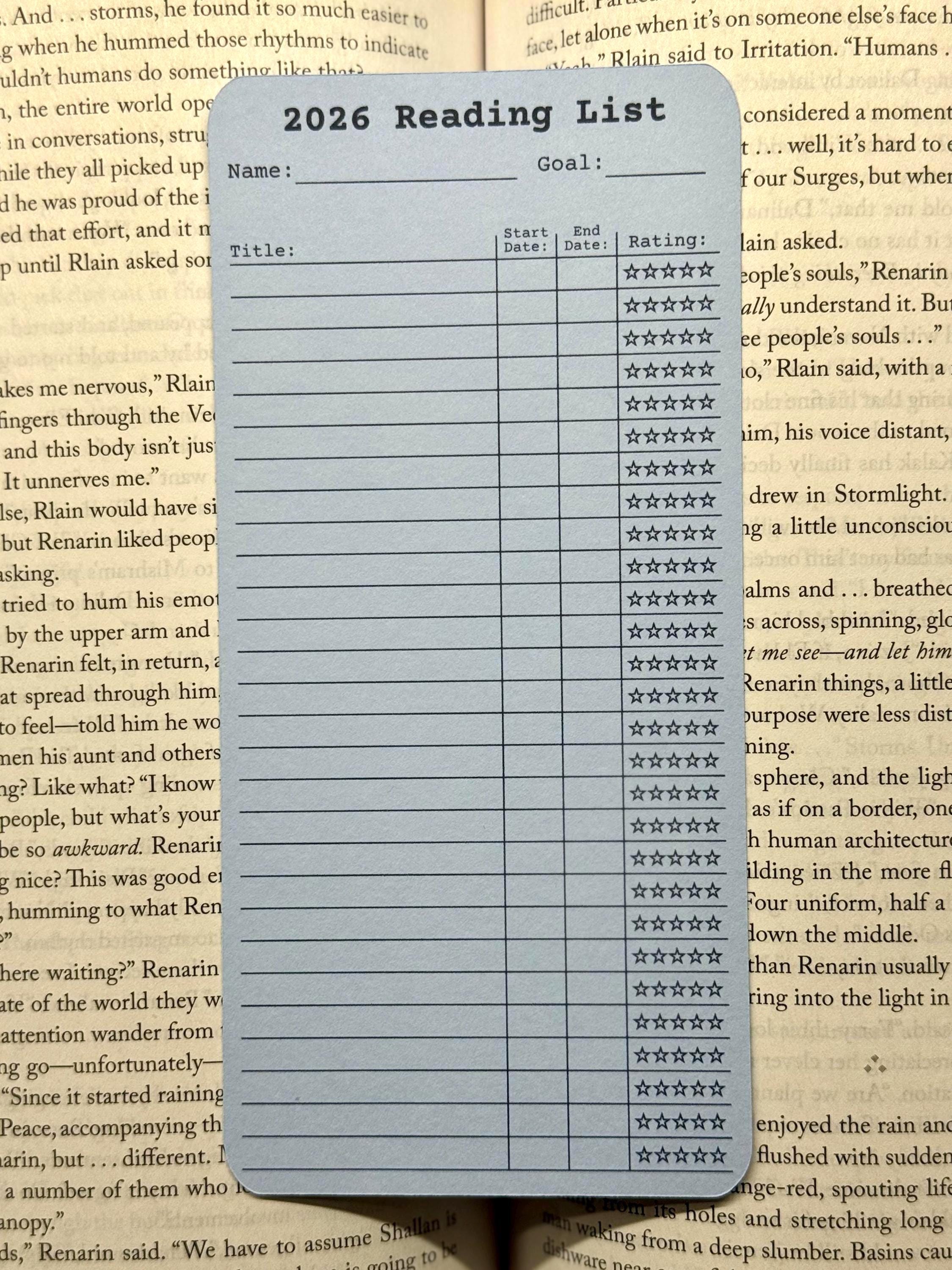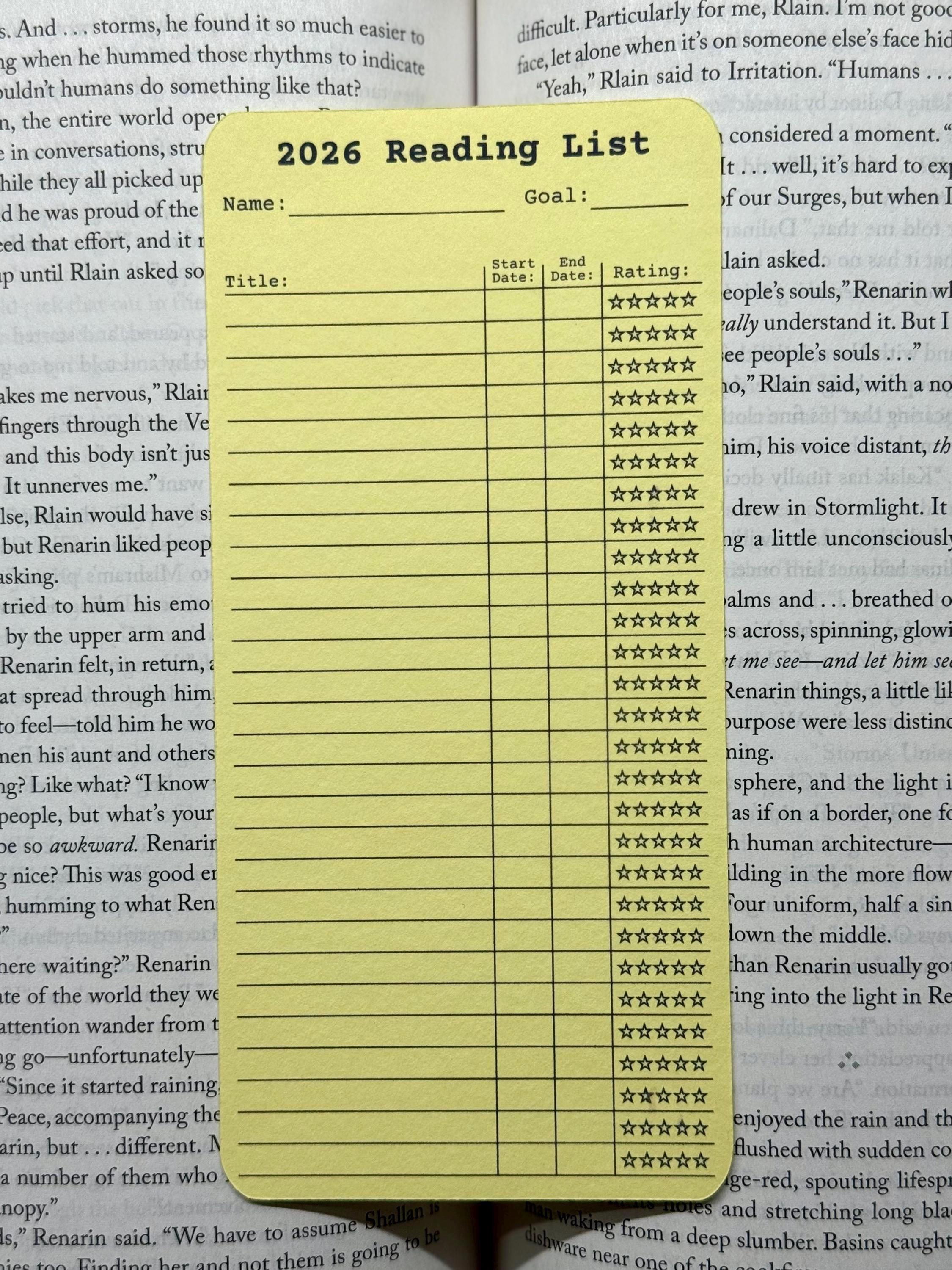 Each bookmark measures 3.25x7 inches, providing ample space to record important details for up to 28 books. Whether you're tracking your yearly reading goals or noting down favorite titles, these bookmarks make it easy to stay on top of your literary adventures. Write the book title, start and end dates, and give each a rating with the star system to reflect your thoughts.