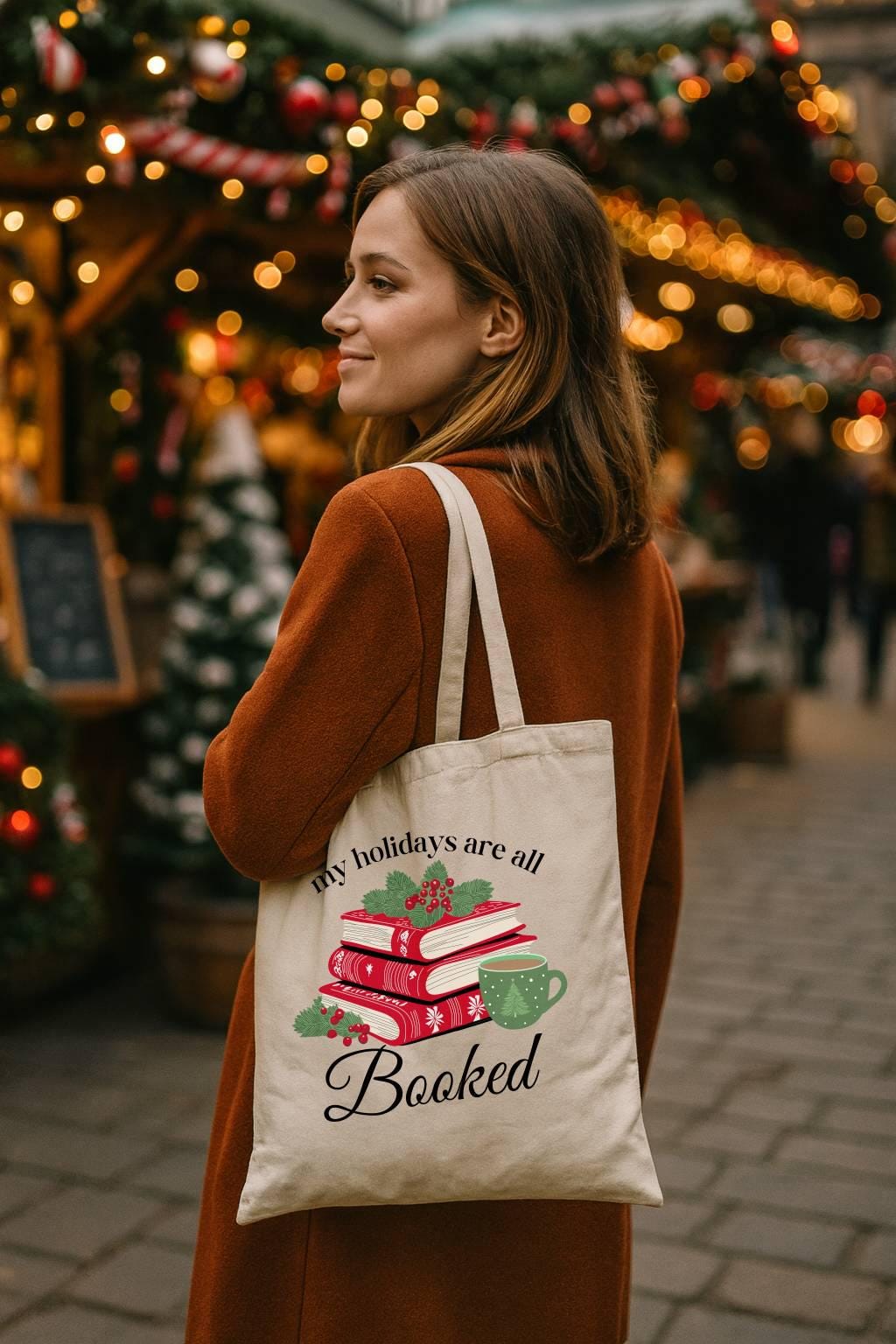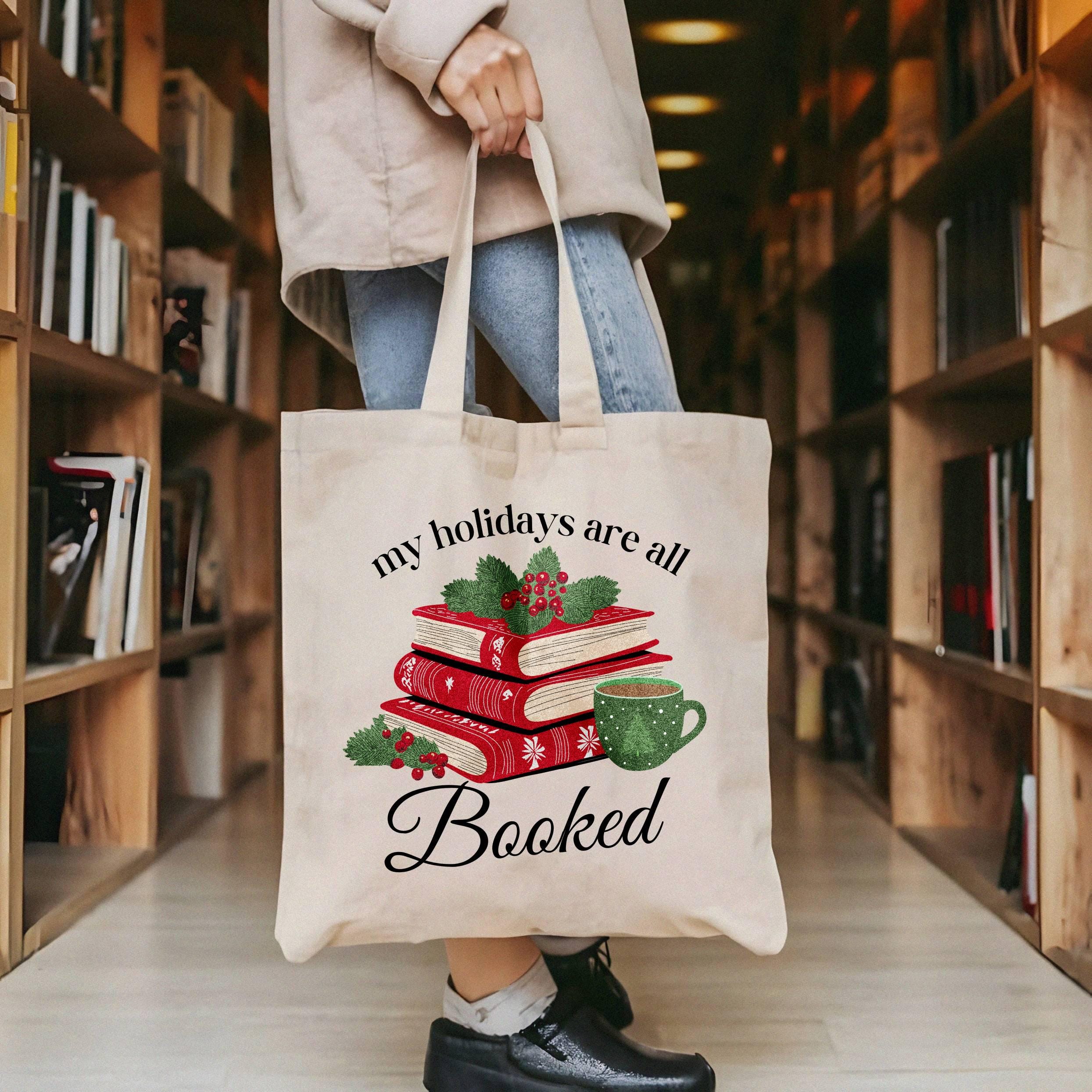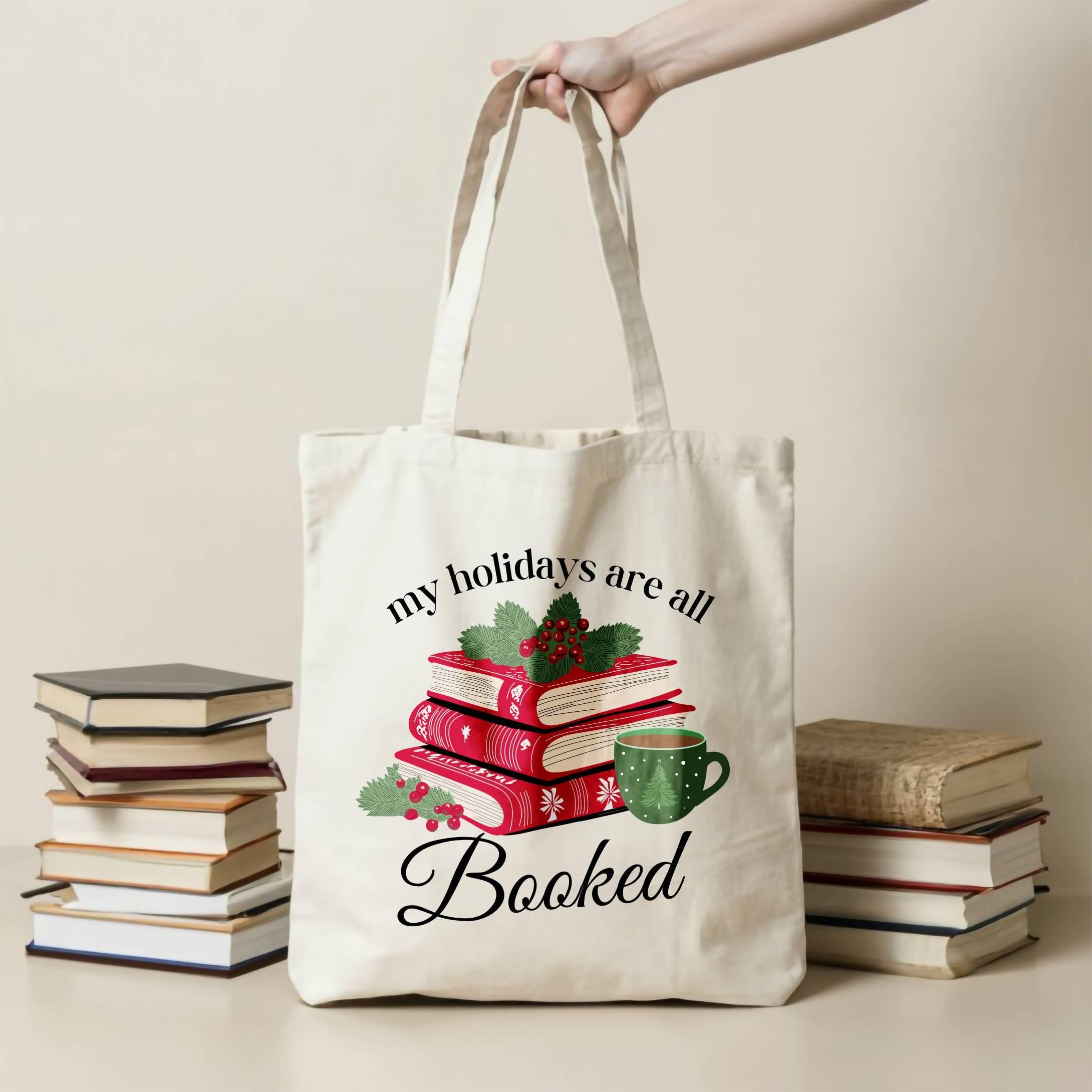 Celebrate the holiday season with this charming Bookish Tote featuring the playful phrase "My Holidays Are All Booked." Made from durable 100% cotton canvas, this eco-friendly Christmas bag is perfect for book lovers, holiday shopping, or as a thoughtful gift for the bookworm in your life. Its spacious 15" x 16" size and sturdy 20" handles make it ideal for carrying everything from groceries to gifts, all while showcasing your love for reading during the winter season. Whether you’re heading to a holiday party, the bookstore, or wrapping up presents, this versatile tote combines practicality with festive cheer.
