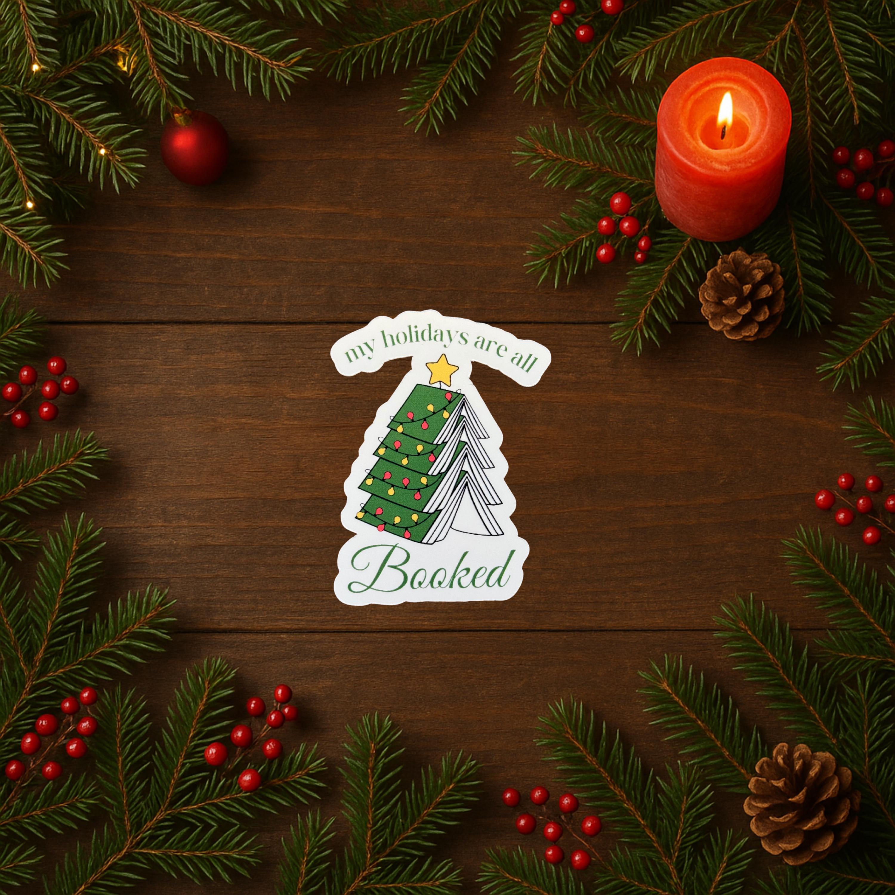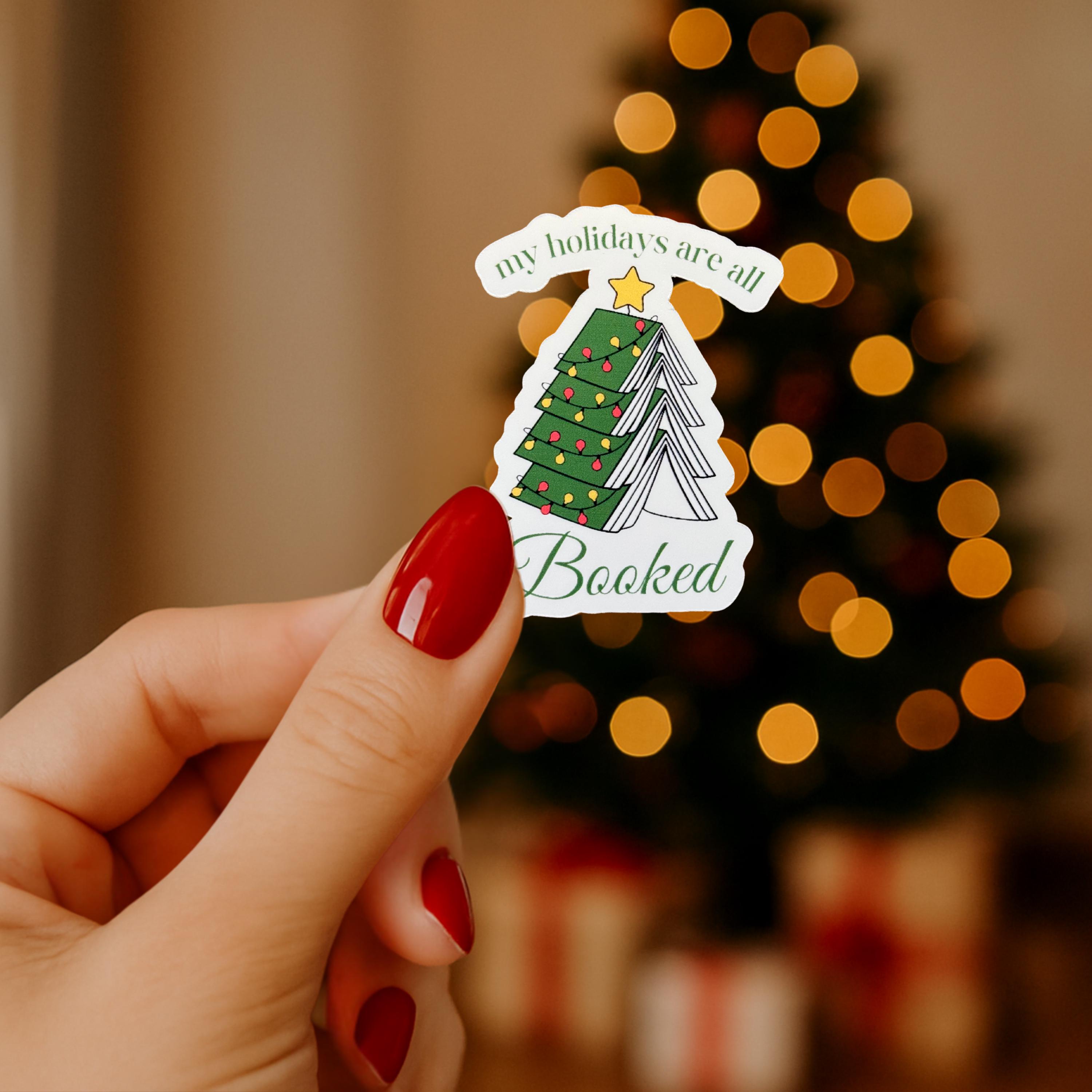 Celebrate the holiday season with this charming Bookish Christmas Sticker featuring the playful phrase "My Holidays Are All Booked." Perfect for book lovers and holiday enthusiasts alike, this glossy vinyl decal adds a festive touch to your favorite accessories. Whether you’re decorating your water bottle, laptop, Kindle, journal, or holiday gift, this adorable sticker is sure to spread cheer and showcase your love for reading during the most wonderful time of the year.