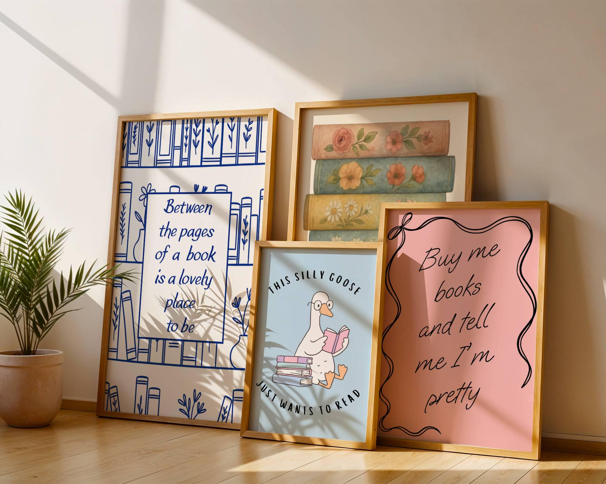 Transform your reading nook into a charming literary haven with our Digital Download Bookish Wall Art. Perfect for book lovers, this girly and whimsical decor piece adds a cute, cozy, inspiring ambiance to any space. Whether you're decorating a library, a reading corner, or a book nook, these printable wall art designs bring personality and style to your home.