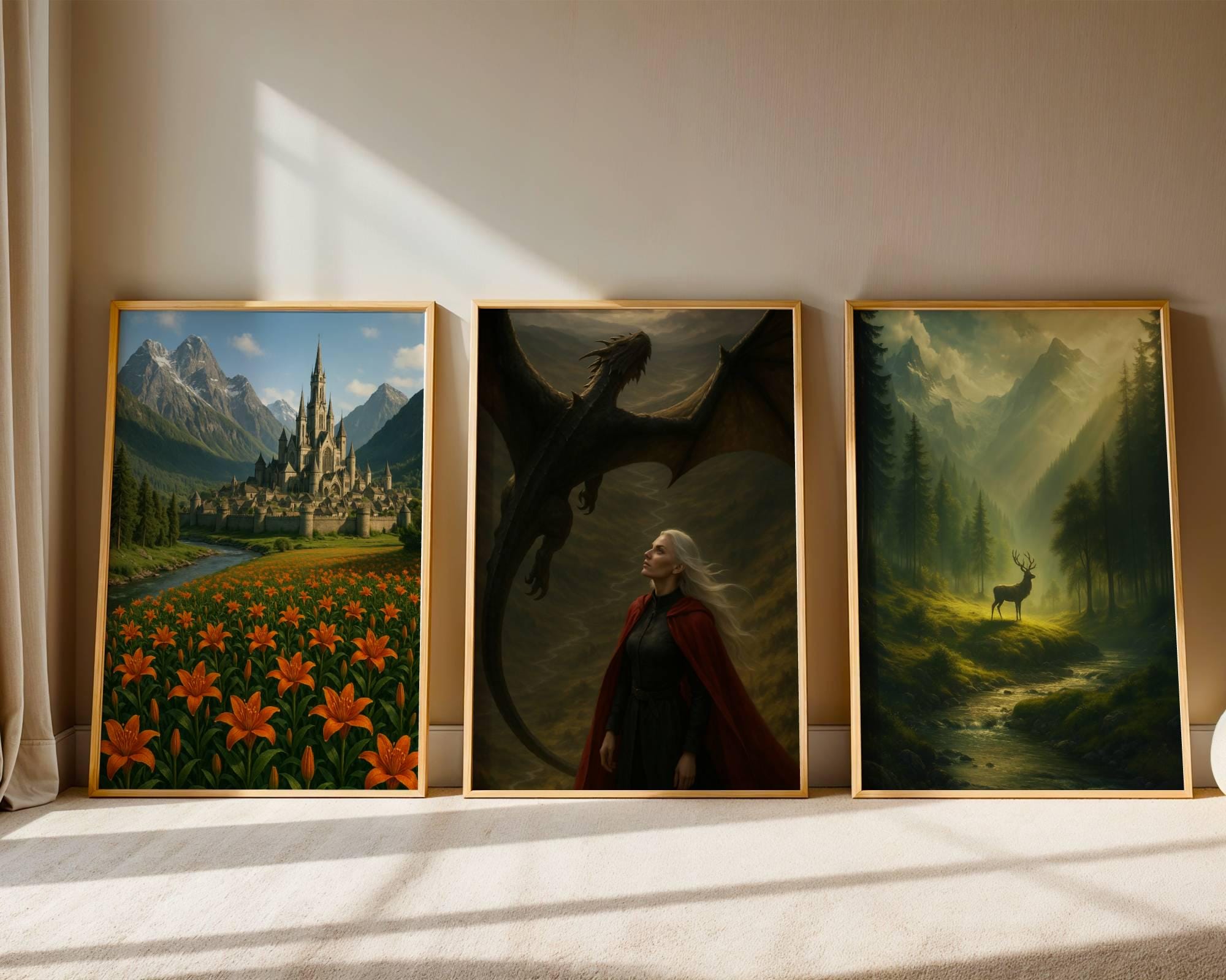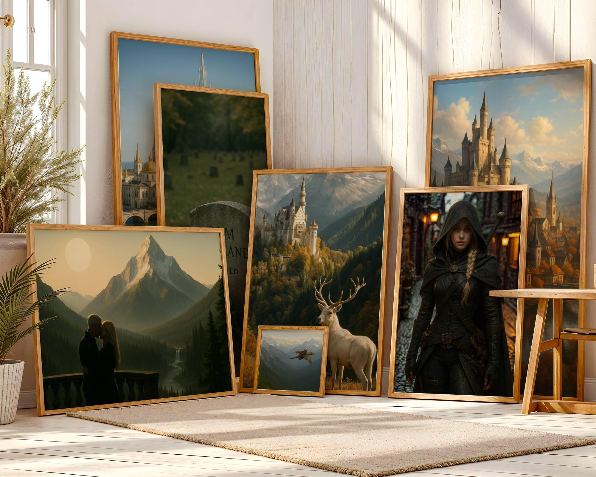 Transform your space into an enchanting high fantasy kingdom with this stunning High-Fantasy Kingdom and Heroine Aesthetic Pack. Perfect for book lovers, fantasy enthusiasts, and anyone who dreams of epic adventures, this digital download features 22 beautifully crafted wall art images. Whether you're a fan of dragons, strong heroines, or magical castles, these visuals will elevate your library decor, bedroom, or creative space with a touch of mystical allure.
